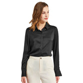 Chemises en soie pour femmes à manches longues avec boutons - Noir