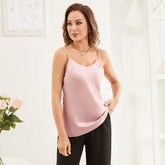Débardeur en soie pour femme, bretelles spaghetti, encolure ras du cou - Rose rose