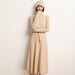Enveloppez-vous de luxe avec cette robe midi en cachemire côtelé pour femme, confectionnée en Cachemire premium pour une douceur et une chaleur optimales. Dotée d'un élégant col montant, de manches longues et d'un motif côtelé flatteur, cette robe allie élégance et confort douillet. Son ton beige neutre la rend facile à porter au travail, en week-end ou pour les grandes occasions.