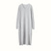 Dotée d'un décolleté en V flatteur et de manches longues ajustées, cette robe offre une silhouette intemporelle, parfaite en toute occasion. Sa maille douce offre chaleur et luxe, tandis que sa longueur midi ajoute une touche de sophistication. Sa coupe droite assure un confort optimal et une coupe soignée, idéale pour les sorties décontractées comme pour les événements formels.