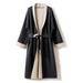 Enveloppez-vous d'une élégance intemporelle avec ce cardigan-manteau en cachemire double face, alliant confort et sophistication. Avec ses bordures beiges contrastantes sur une base marron intense, cette pièce longue s'intègre facilement à votre garde-robe. Sa ceinture à nouer souligne la taille pour une silhouette flatteuse, tandis que son design ouvert sur le devant offre une grande polyvalence.