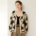 Ce cardigan boutonné en cachemire jacquard arbore un motif audacieux d'inspiration vintage, ajoutant une touche artistique à votre garde-robe. Doté d'un décolleté en V profond et d'une bordure côtelée contrastante, il offre une silhouette structurée et décontractée pour une superposition facile. Les boutons dorés apportent une touche raffinée, tandis que les épaules tombantes et le col montant
